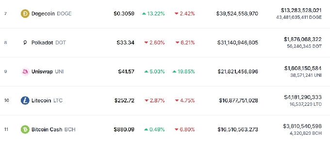 대표적인 암호화폐 비트코인 가격이 주춤한 사이 '머스크 효과'로 도지.